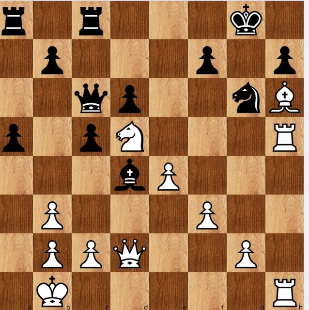 I messed this one up royally, and annoyed with myself, since (of course) I looked at 1 Qd4! (of course in the sense of Purdy's maxim examine all biffs) but didn't see the follow through 1…cd[] 2 Nf6+ Kh8 3 Bf8! and Rh7 mate. My blind spot was that I solely looked at the Nd5 in terms of e7, attempting to get the K and Q fork.
