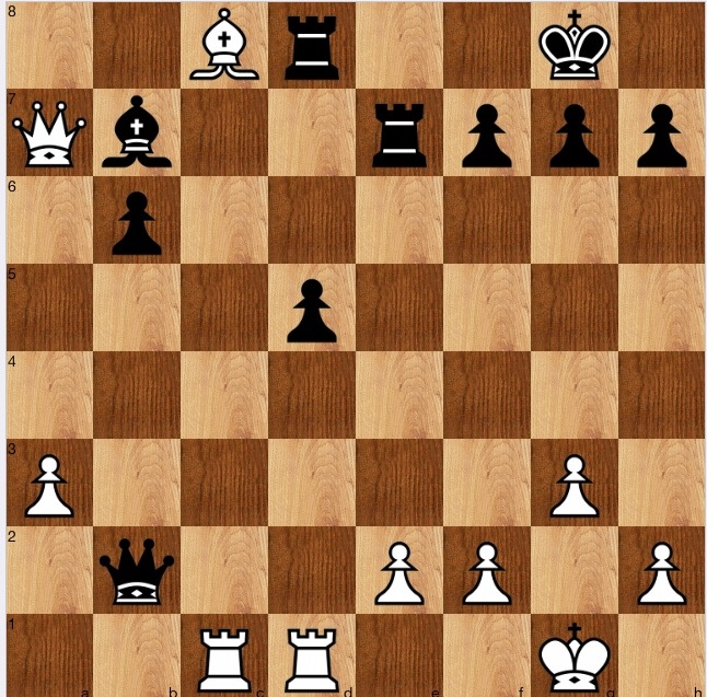 There are several motifs at play here. The Qa7 is in a net, but (if it were black to move) then 1…Ra8 2 Qa8+ Ba8 3 Rc8+ and mate: there is a back rank motif. This can also be seen with the threat of a jump biff Rd7 Rd7 and Qb8 mating. Meanwhile, white's e2 pawn is LPDO. There are threats to biff like 1 Rb1: for a while, I thought the solution was 1 Bf3 or 1 e3, seeking to win the b6 pawn (by 2 Rb1) and that may be good, but wanting more, I looked for other lines.
