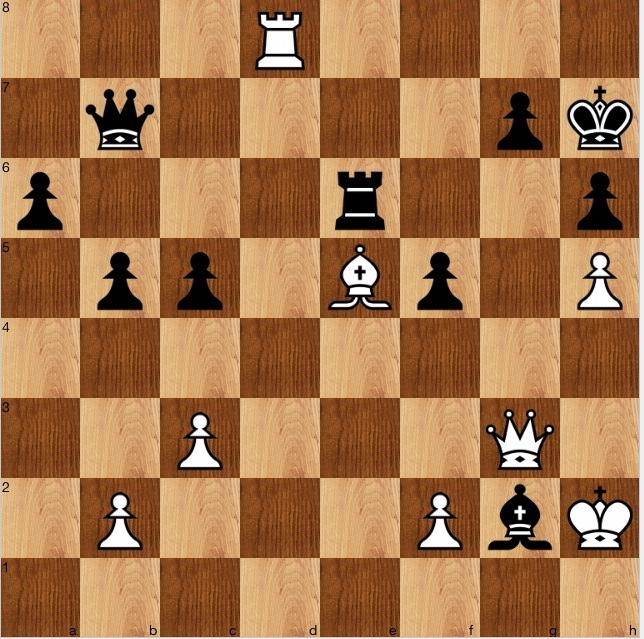 When I entered the position into Stockfish in order to write up the blog, the engine showed 1 Re8! as even better. Probably it is right, its point being 1…Re8 2 Qg6+ and Qe8+, the Re8 being LPDO; then Qg6+ and Qg2: it is 'simpler'.