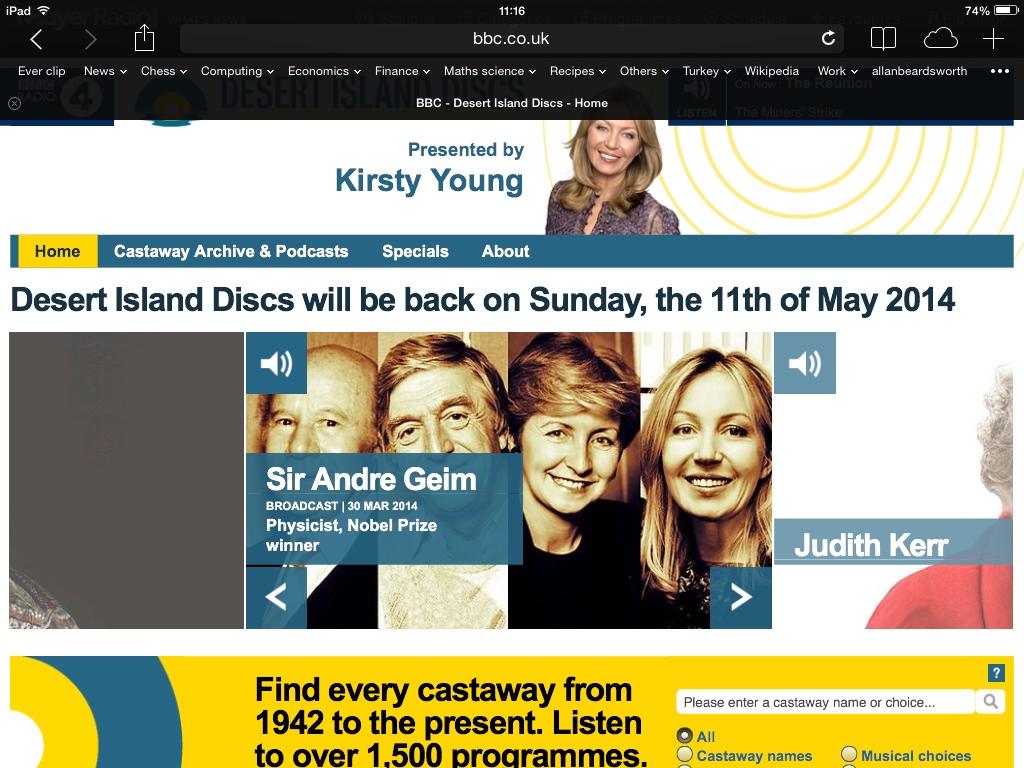 Two: A very close friend of Jane and mine happened to tell me recently that one of her favourite programmes was also Desert Island Discs. She asked me which my favourite episodes were, and this has set me thinking, and was the ultimate trigger for this blog posting.