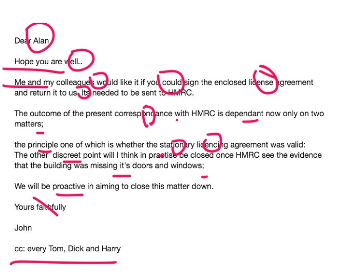 I have of course made the entire letter up. It is my attempt to summarise many of the most frequent mis-spellings I see in everyday practice- oh, and some of my pet hates.