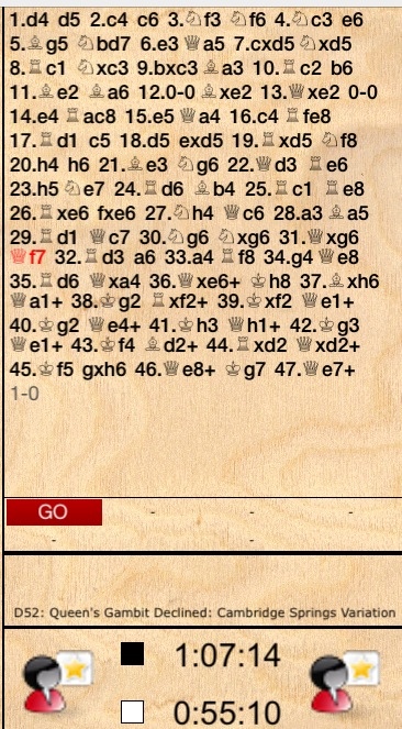 It will be interesting to see what the GM commentators say. There is a risk in blogging too soon that I have missed the point, but Jonathan's tweet reassures me. My suspicion is that 17…c5 will be considered to be a mistake, with 17…Be7 being preferable. Also, after 19 Rd5!! white's bishop hasn't got many squares to go to (it didn't want to go to e3, but had to: on f4 the black knight could biff it, and make it retreat to the even worse square g3). My suspicion is that Shak's Nf8-g6-e7 was the wrong routing for the N, which instead should have gone Nf8-e6, supporting the c5 pawn, so that a7-a6 and b6-b5 stand a chance of releasing the Ba3.