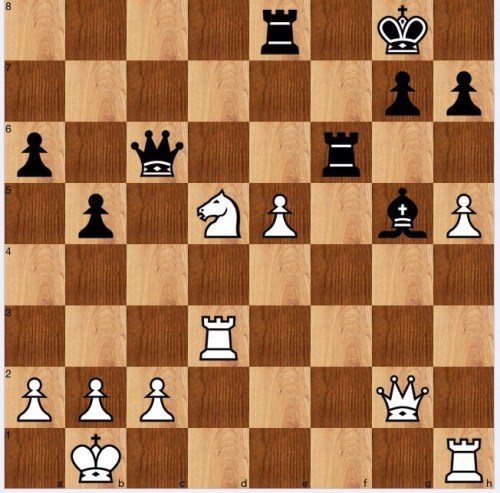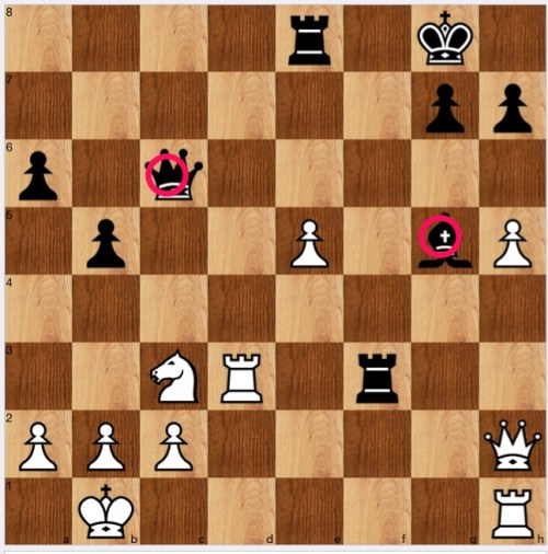 In this highly tactical positon, black's pieces hang by a thread, or, in an acronym, LPDO, to use one of my key chess tools, loose pieces drop off, as coined by John Nunn. Here, black has two LPDOs: