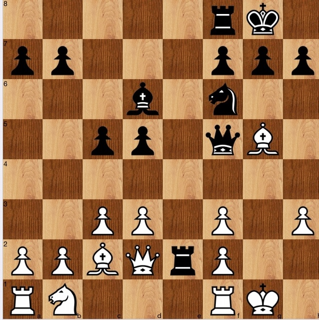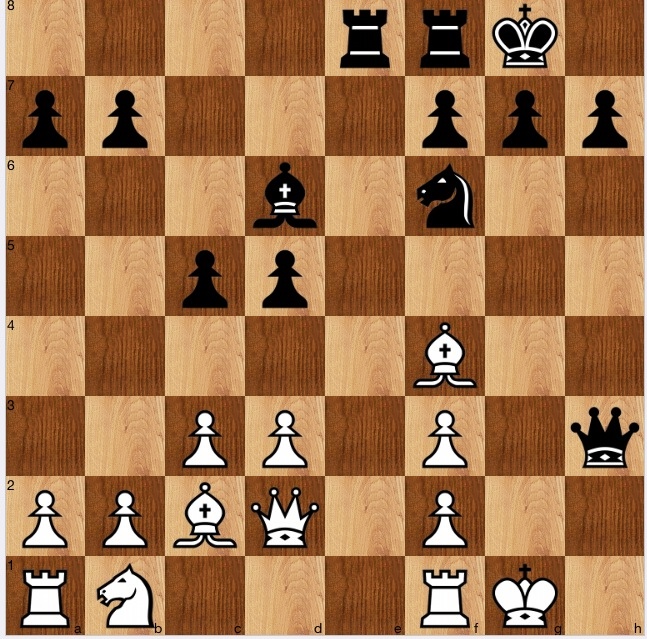 Finally, Stockfish's first move, which it rates higher than 2…Re2!, is 2…Nh5!, a move I never thought of, but again, when seen, is logical: it improves the positon of the N, threatening to come in to f4 either with the N or, better, the B, and just shows how tied up white is. Once Stockfish is given more time, its assessment changes, and the order is -6 for Re2, -9 for Nh5, -9+ for Qh3: essentially, many things win. The assessments are, to repeat, pretty meaningless. The lessons to draw are the recurrent advantage of remembering principles: 3…Re5! in the Qh3 line shouldn't have been hard, it is 'a rook lift' or 'bringing more pieces to the party'; and 2…Nh5! is also 'bringing more pieces to the party'.