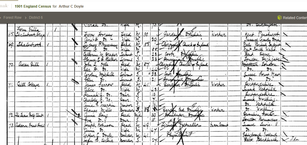 Sir Arthur, born 22/5/1889 near Edinburgh trained as a doctor, seemingly because of parental persuasion; he married on 6/8/1885 in Settle, near Carlisle, Louisa Hawkins. Louisa was poorly from early on in the marriage and the discussion explained that Sir Arthur commenced a close relationship with Jean Leckie. Gyles said there was some doubt whether their relationship was platonic until after Louisa died, when Sir Arthur and Jean then married. The expert, Andrew Lycett, Sir Arthur's biographer, explained to Gyles that it had ever appearance of being non platonic, including the key fact that he and Jean were staying at the same hotel on the night of 31st March 1901.