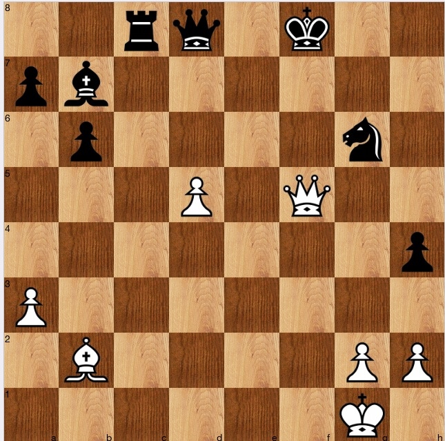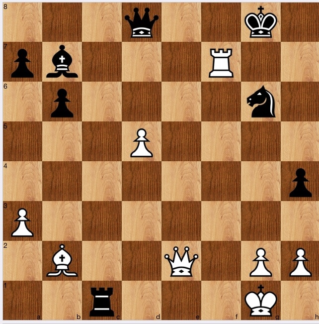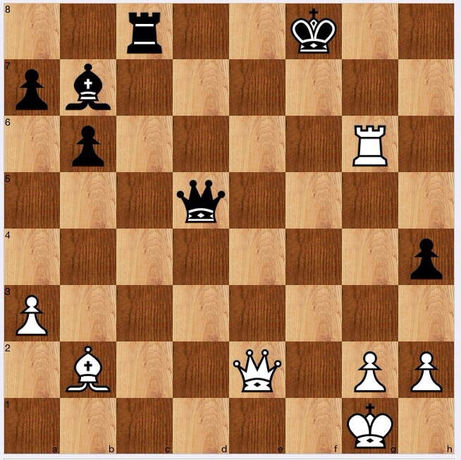 However, I found a better defence for black, 1…Qd5!, the point being that if 2 Rg7+ Kf8! 3 Rg6?, black has 3…Qc5+: