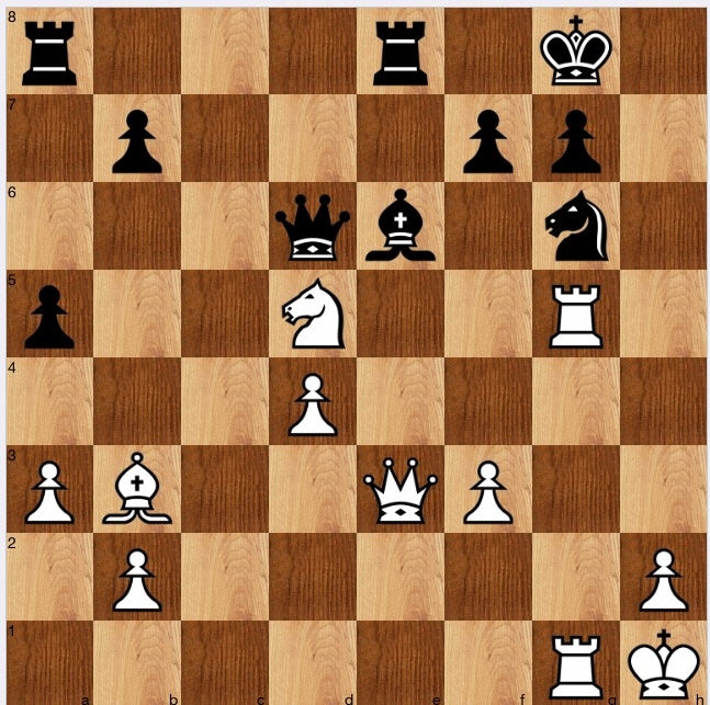 Other black defences are weaker, so I then loaded the position into Stockfish, and also tried 1 Rg6!: it turns out it is more or less equivalent since if 1…fg 2 Nf6+! Kf7, white has 3 Ne4! hitting the LPDO Qd6 and then playing 4 Ng5+: the bishop falls since if 4…Kf6 (3 Ne4 Qd7 4 Ng5+) 5 Qe5+ forces 5….Ke7. So, 1 Rg6! is equally winning.