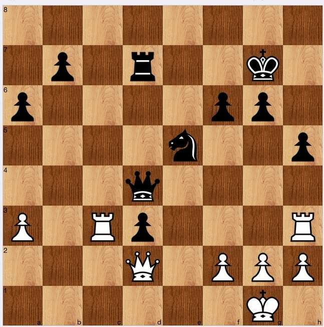 Reitstein actually starts his problem a couple of moves earlier, showing 0…Qd6-d4 1 Kf1, and asks 'then what', but it is still ridiculously easy: 1…Qc3, and the pawn promotes, or white must give up his queen.
