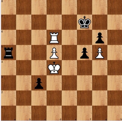 1…Rc5! and the black pawn promotes. For instance, 2 Kc5 c2 and the rook can't get back, and the king on c5 interferes and negates Rc6.