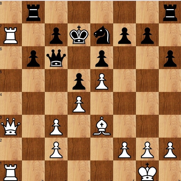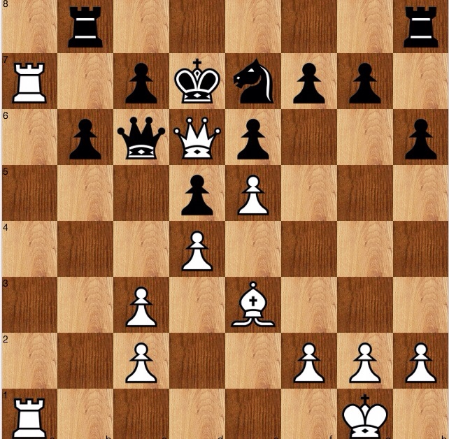 Then 1…Kc8?? drops the knight; 1…Ke8 the c7 pawn, and white commands the a file and 7th rank, so 1…Qd6[] 2 ed. Then 2…Nc6 3 Rc7+ and 4 Rf7 (or maybe 4 Bf4+ if 3…Kd6) so 2…Kd6 3 Bf4+ Kd7 4 Rc7+ 1-0.