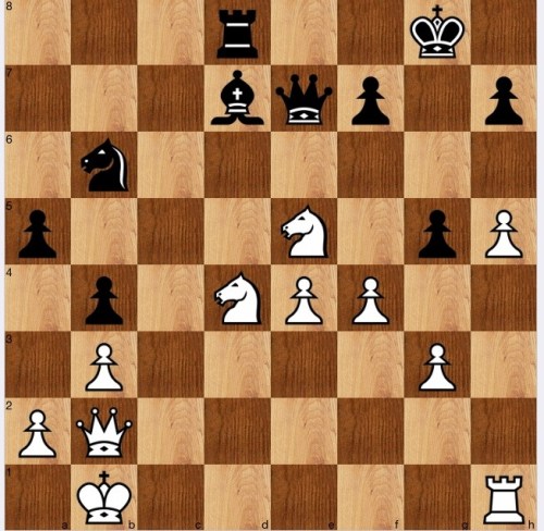 I think one of the insolvable difficulties of chess is that it is not how much you know, but how much you can remember or apply when needed. In my defence, I only took the quickest of peaks at the above position, also looking quickly at the other four games, but combining LPDO and ignoring threats leads to Carlsen’s move 29 Qa3! The engine gives it as white’s best move.