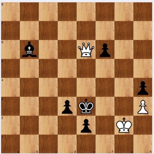 In the above 'final' position, I think I would play 9 Qe6+ 'without thought' and when black accepted the draw offer, I hope that we would be both relieved and friends having had a good tussle. However, when I loaded the game into Stockfish, in order to produce the screenshots for this blog, it suggests 9 Qa1!? which is sneaky.