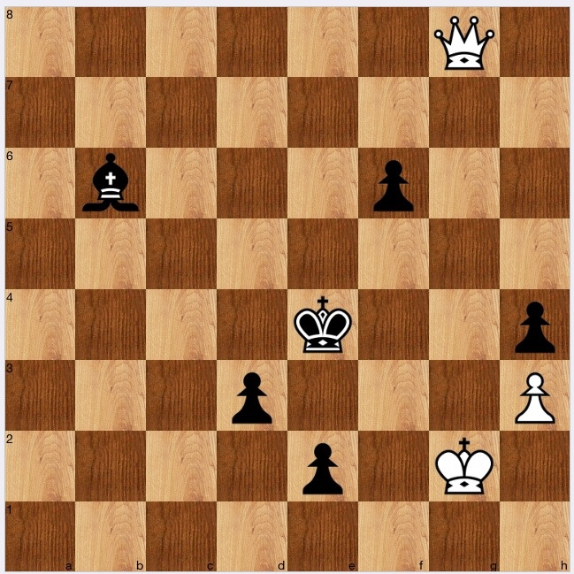 So, Ben's line is forced. 2 g6 Kf5 3 g7 Ke4