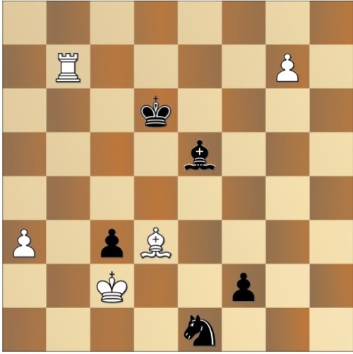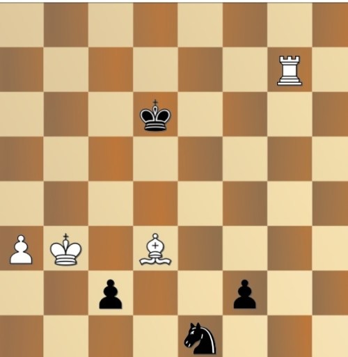 In the game, white played 2 g7, and the game ended 2..Ne1+ 3 Kd1 Bg7 4 Rg7 c2+! and one of the pawns queens.