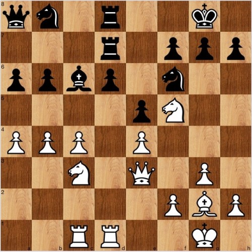 Trivial today: a N on f5 looks at g7 (see puzzle 171, a few days ago) and here 1 Ng7 simply wins. If it is captured, then 2 Qg5+ wins the Nf6, and if 1…Ng4 2 Qg5 and black has nothing.
