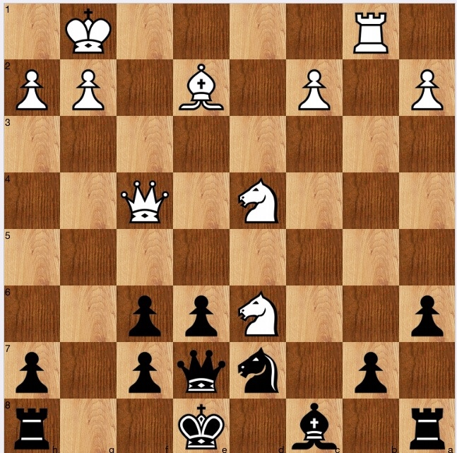 Next, the correct solution is to follow 'intuition' and play 1…Kf8. Tucking away the king on the wing would be the move one would play in bullet or blitz, and you would hope that after 2 Qh6+ Kg8 there was time if needed for Nd7-e5-g6 if nothing else. It is not too hard to see there is something else, namely (in this line) 3 Rb3 Qd6 4 Rg3+ Qg3 5 hg when the position is balanced.