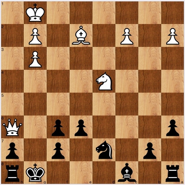 Today's puzzle is, I think, especially good, and is worth taking time on. Intuition may or may not guide you correctly, and there are many lines to calculate. I thought I did a good job myself, but when writing this blog up with the aid of Stockfish, the engine had a surprise in store.
