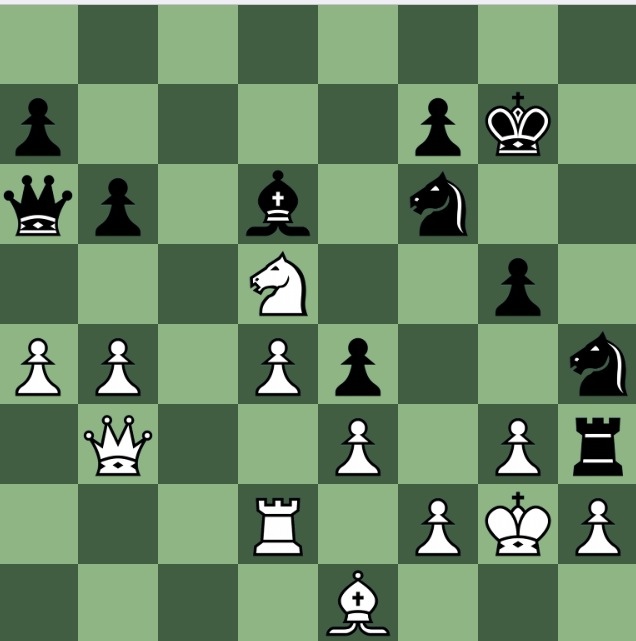 Not my finest day. After trying to make 1…Rh2+! 2 Kh2 Qf1 work, and missing how, I then turned to 1…Ng4! and struggled to victory. I completely missed the neatest win.