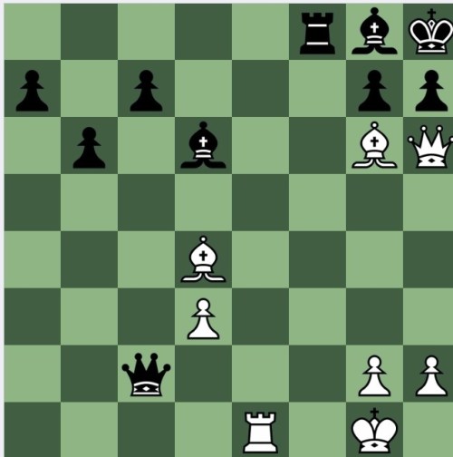 If the rook takes the bishop, then. 2…Qd1+ mates. If the bishop takes, then 2…Qf2+ and 3…Qe1 mate. So 2 Qe3 is forced, when the bishops are exchanged, and then: hg; there is no mate, with Bh7+ always being possible after Q-h file checks.