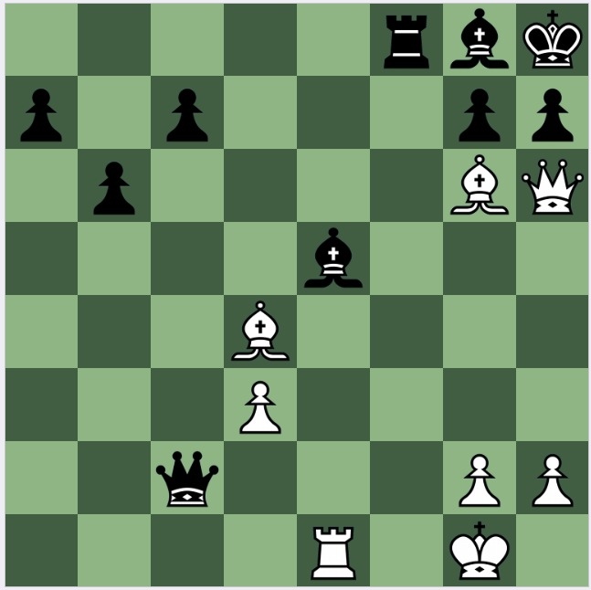 If the rook takes the bishop, then. 2…Qd1+ mates. If the bishop takes, then 2…Qf2+ and 3…Qe1 mate. So 2 Qe3 is forced, when the bishops are exchanged, and then: hg; there is no mate, with Bh7+ always being possible after Q-h file checks.