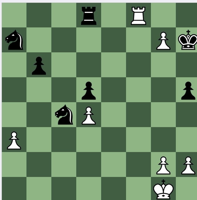 I reached the positon in my analysis, and assessed it as 'and the game goes on', Jon Speelman's phrase. I thought 1…Nc6 2 Rc7(say) Nd4 and I somewhat preferred black: one point is that 3 Rd1 doesn't win the LPDO Nc4 (LPDO because the Pd5 is pinned, because of the jump biff Rd1-d8, the Rd8 being LPDO. It doesn't win it because 3..Ne6! both biffs the Rc7 and defends the no longer LPDO Rd8.