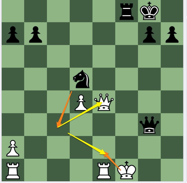 3…Nd3+ 4 Ke2[] Rf2+ 5 Kd1[] Nb2+ 6 Kc1[] Qc3+ 7 Kb1[]