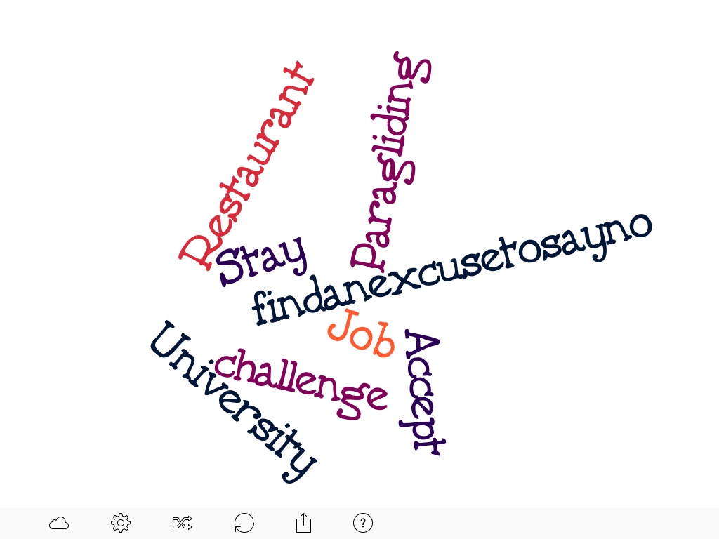 Some typical questions are in the about WordCloud. Now, if I were asked 'do you want to go paragliding' the answer would be obviously: yes! when! now? (anyone who knows me will know that's a lie).