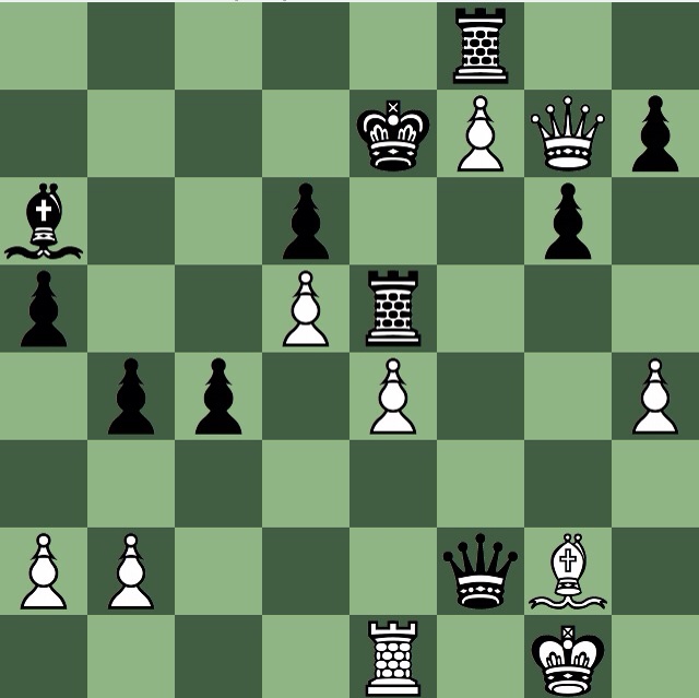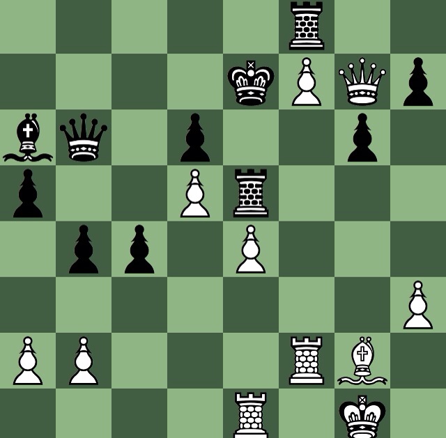 Fairly straightforward: examine all biffs reveals 1… Qf2+! 2 Kf2 Rf7+ 0-1