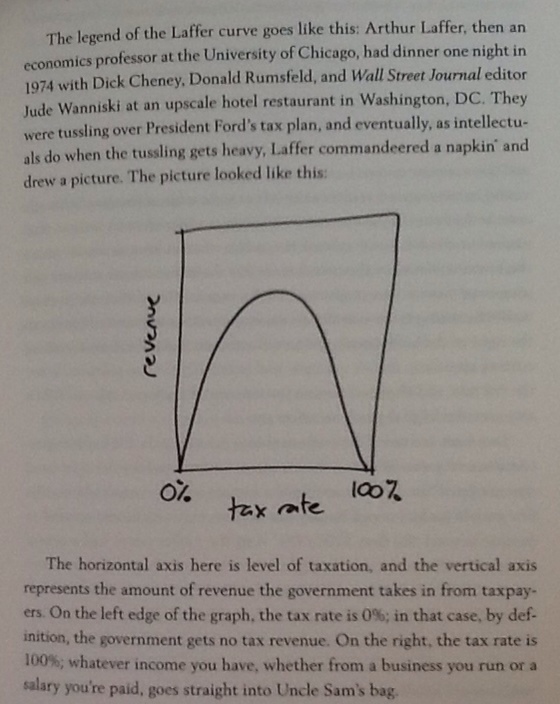 The last example, tax rates, is the cause of the famous Laffer curve napkin.