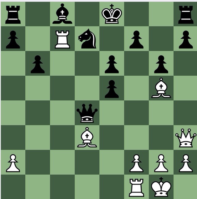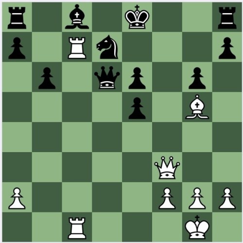1 Bg6! Qd6 (defending the Pe6 and biffing the Rc7) 2 Rfc1 fg (2….Ba6 3 Qf3 double attacking the Ra8 and Pf7 1-0) 3 Qf3, threatening mate with Rc8+, and the Nd7 is pinned- so Nc5 Qf7 mate.