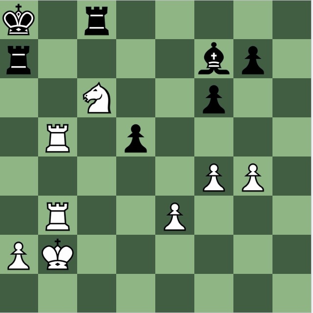 Here, 1 Nc6! with the idea 1…Rc6 2 Ra5+ and mate next move, since Rc6-a6 is unprotected. Or, if 1…Ra7!, seeking to benefit from the self pin Nc6 creates, 2 Rb5! and 2…Rc6 3 Rb8 mate.