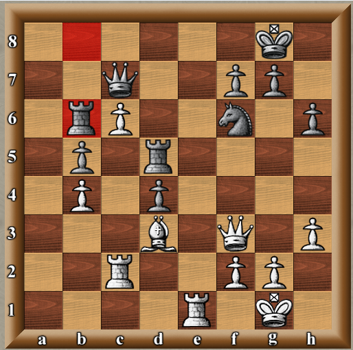 Examine all biffs requires a player to look at Qf6??, Bb5?? and Qd5; and threats to biff, Re8+??, from which it is noted that the Nf6 is tied to defending both Rd5 and e8, and also the king is in a net, since the Bd3 looks at h7.