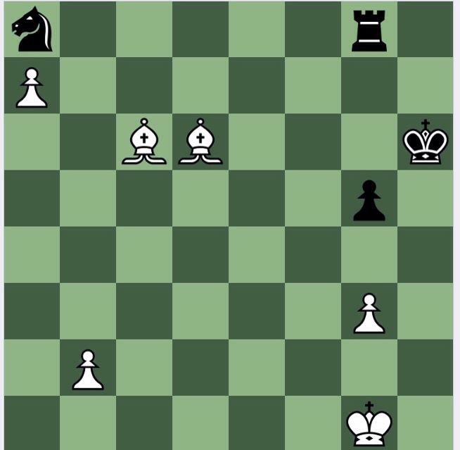 A simple one today, 1 Ba8! Ra8[] 2 Bb8! locks in the bishop, so that either the pawn advances and queens, or, if the king comes over to block it, white's king snaffles black's g pawn. Game over.