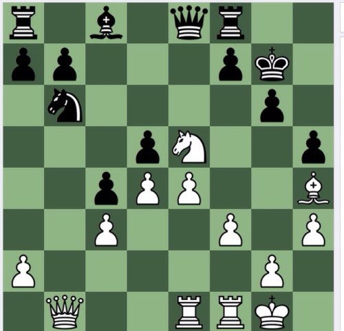Position after 19…h5 (threatening to trap the knight by f6) and 20 e4!? (permitting f6, which was played)
