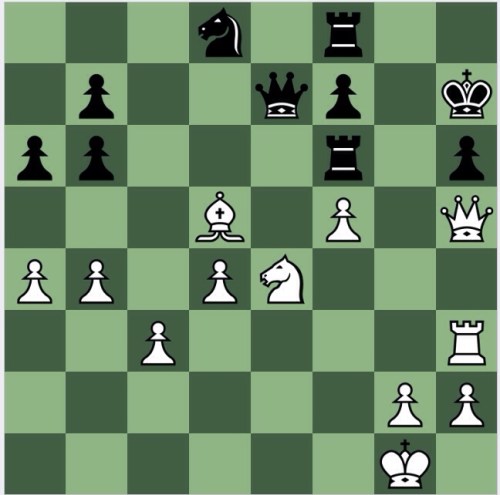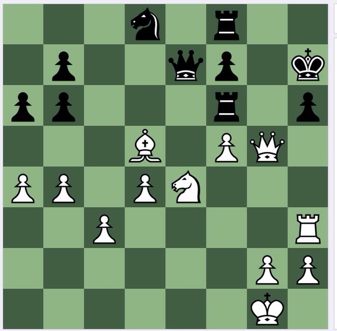 This one took me a while: in British unit of measurement terms, the time to boil, brew and drink a cup of tea. Alas, for a while I didn't attack the problem methodically, but tried to make the startling (startlingly bad) 1 Qh6 work, and then playing the slow 1 g4 (which Stockfish shows as +9), but is slow, until returning to Purdy basics, and seeing that black's Queen is LPDO, and that the Queen is tied to defending the Rf6. That was all that was needed to find the slight sidewards move 1 Qg5! when it is all over. White threatens 2 Nf6+ and if 1…Re6 white has various wins, including 2 f6 threatening the queen, threatening Qg7 mate, and threatening Rh6 mate.