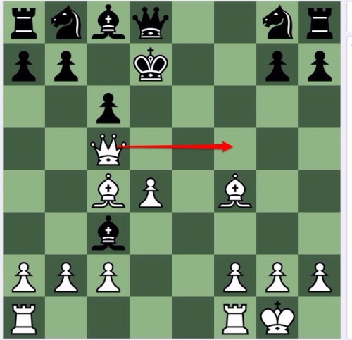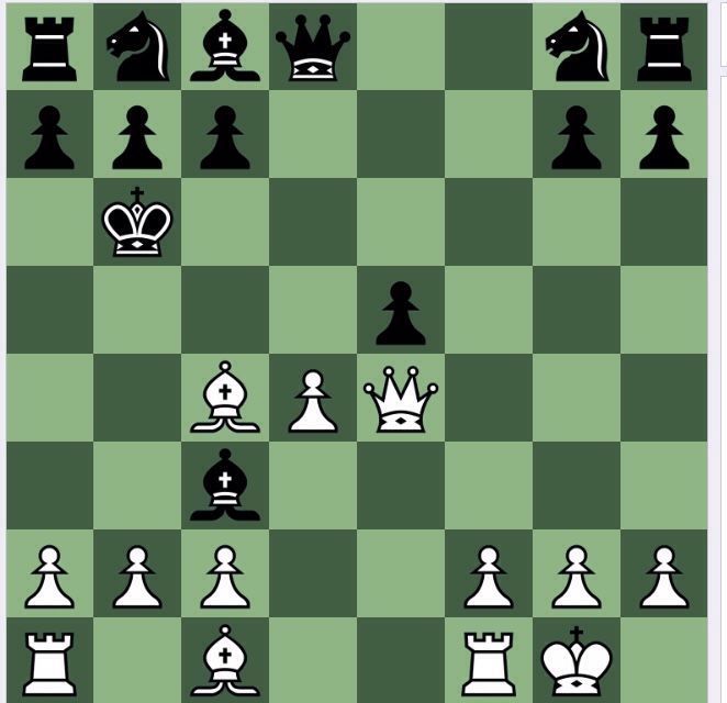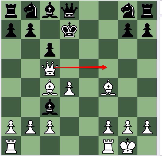 1 Qe5! (in the game, white played 1 bc, which of course many would play, not knowing there was a solution) 1…c6[] (White was threatening Qc5 mate and Qb5 mate) 2 Qc5+ Kc7[] 3 Bf4+ Kd7[] and now the only hard move to see, 4 Qf5+! with mate next move, 5 Qf7 mate.