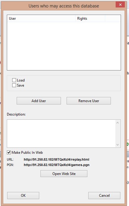 To give access to a blog database, click on the cloud database tab, and open a new database in the normal way, and copy/paste whatever you want to put on your blog into your blog database. Then right click on the database icon, click on Database Sharing, tick the check box Make Public in Web, Click on Open Web Site (note to Chessbase: for a future release, let users copy and paste the URL and PGN links which are set out but at present can't be copied), click on the address box, and copy/paste the line. As far as I can see, but I could well be wrong, it is not possible to copy and paste the pgn line.