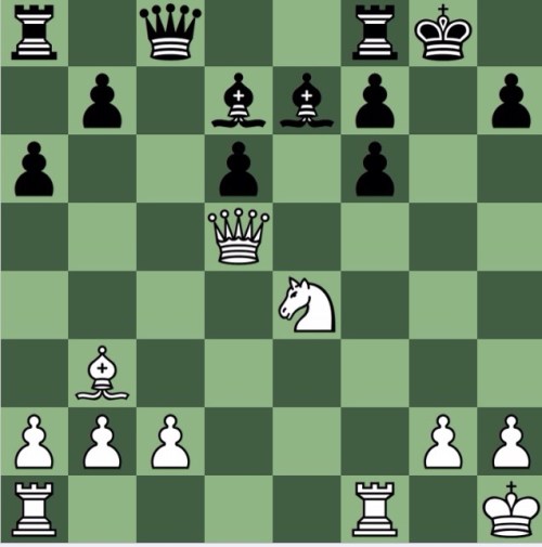 Slightly unsatisfactory today, since many lines win. I preferred the move played in the game, 1 Rf6, though it is not really any better than 1 Nf6+; 1 Qd4 (which the engine prefers); or 1 Rf3 (a good old fashioned rook lift, also favoured by Stockfish.