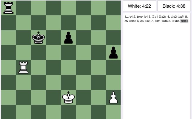 Briefly, back to 1…Rc8, since there is a nice line. Say 2 Ke3 (marking time) 2…c4 3 Rc2 (marking time)