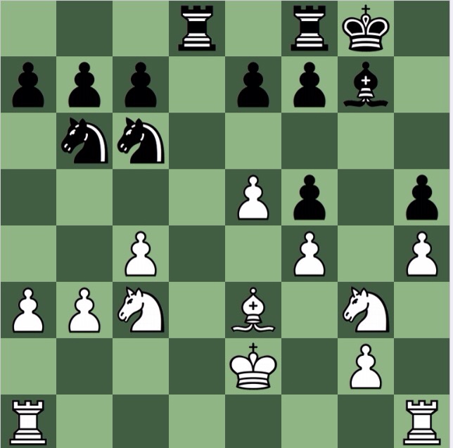 Reitstein says that black has won a pawn, and has the better game. This isn't correct: white retains an advantage after 3 Raf1 hitting the f5 pawn. If black defends it, 3…e6?, then he loses after 4 Bb6! and 5 Rf3- the crafty rook manoeuvre both hits the f5 pawn and prepares this tictac. So, after 3 Raf1, black must take one of the knights, and white captures on f5, and is a pawn up with the better position.