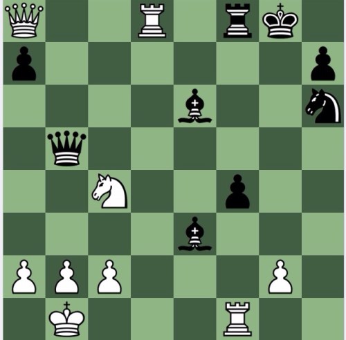 Here, the threat is 1 Rf8+, but 1…Qc4! is a double attack, on the LPDO Rf1 and LPDO Pa2, both of which are lethal. So 2 Rf8+ Kg7 and white has only spite checks left, so 0-1.