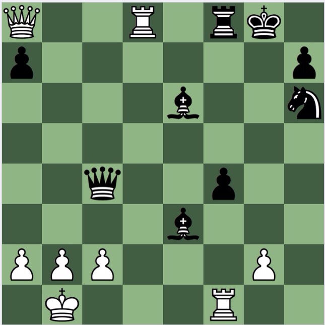Here, the threat is 1 Rf8+, but 1…Qc4! is a double attack, on the LPDO Rf1 and LPDO Pa2, both of which are lethal. So 2 Rf8+ Kg7 and white has only spite checks left, so 0-1.
