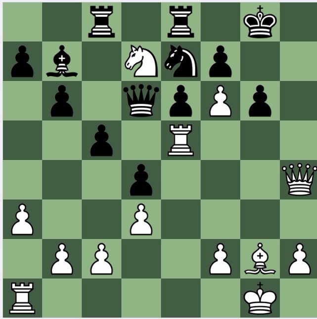 As I normally do, I wrote the above before entering the problem into Stockfish. In this case, Stockfish had things to tell me. Firstly, it also likes 1 b4! and 1 Re4! both of which it says are winning; but it rates 1 Ne5 for higher. But after 1 Ne5! Qd6 at first it likes 2 Ng6 (+8) before deciding 2 Nd7! is even better, though it defends with 2….Ne7!! a move which would have rocked my confidence had I been playing white. But then the engine says 3 Re5!! and black can't prevent mate. Lovely.