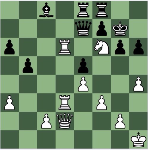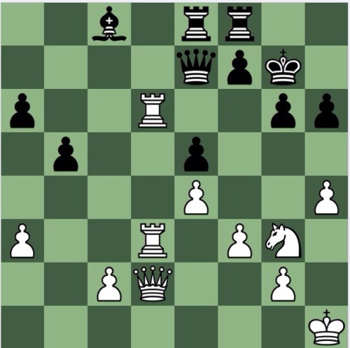 and here I wonder if my technique has improved over the years by watching all today's elite players, because rather than Reitstein's solution of Ne8+ and g3, which of course wins, but eases the pressure, I instantly thought of the meaner 3 h5, seeking to fix the pawns on the king side, locking black's bishop in after 3…g5.