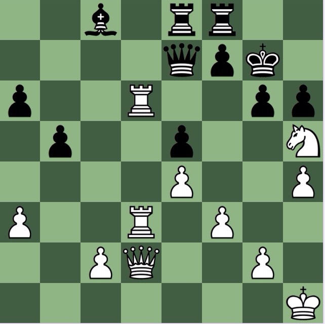 and here I wonder if my technique has improved over the years by watching all today's elite players, because rather than Reitstein's solution of Ne8+ and g3, which of course wins, but eases the pressure, I instantly thought of the meaner 3 h5, seeking to fix the pawns on the king side, locking black's bishop in after 3…g5.