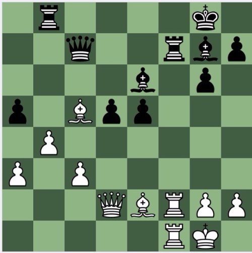 Examine all biffs and a review for LPDOs both lead to 1 Bg4! And perhaps strangely, there is no adequate reply. The fact that the defender of f7 is a LPDO makes black's position collapse. Best is 1…Bg4 2 Rf7 but then white has an overwhelming advantage.