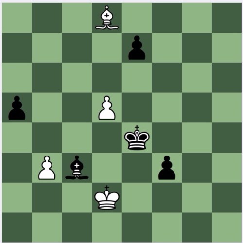 A rest day today. 1…Bc3+! is a simple deflection of the queen. If the bishop is captured, then the f pawn promotes. If instead 2 Kd1 then 2…Bb4 places the bishop on the perfect square, and it is then just a matter of time before the ending is won. (e.g. if 3 d6, then 3…ed, bring the pawn to d3, K round to h3 and g2 0-1)