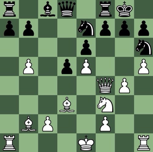 I struggled with this puzzle, eventually settling on the small retreat 1 Qf4! planning 2 Ng5, hitting h7: and I felt it gave white a strong advantage. Turning on Stockfish it gave the move as its first choice initially, with +1 advantage, hardly startling, before switching to 1 Qd2!, which I will come to below.
