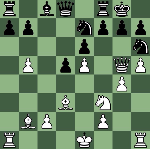 I struggled with this puzzle, eventually settling on the small retreat 1 Qf4! planning 2 Ng5, hitting h7: and I felt it gave white a strong advantage. Turning on Stockfish it gave the move as its first choice initially, with +1 advantage, hardly startling, before switching to 1 Qd2!, which I will come to below.