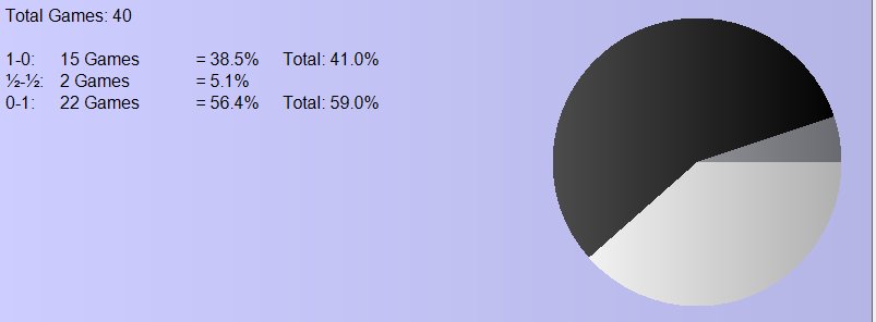 Back to the statistics: despite winning a piece as above, I lost the game; that’s blitz; but a few days later I played Judith again, when she exchanged queens, and beat her. So honours even.